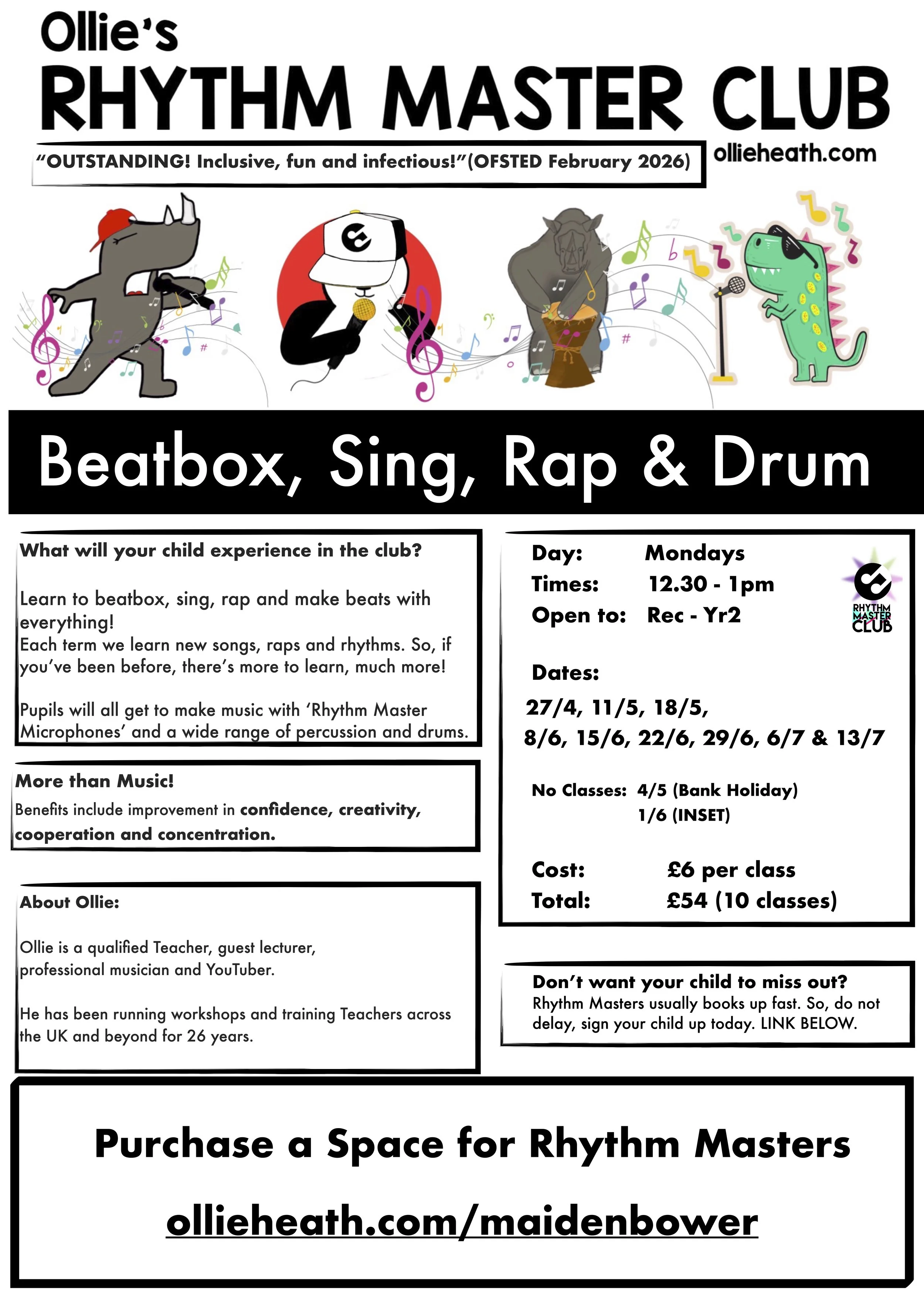 The Rhythm Master Club is open to all ages and ability. If your child has been before there’s much more to learn as each term we learn exciting new songs, rhythms and rhymes.